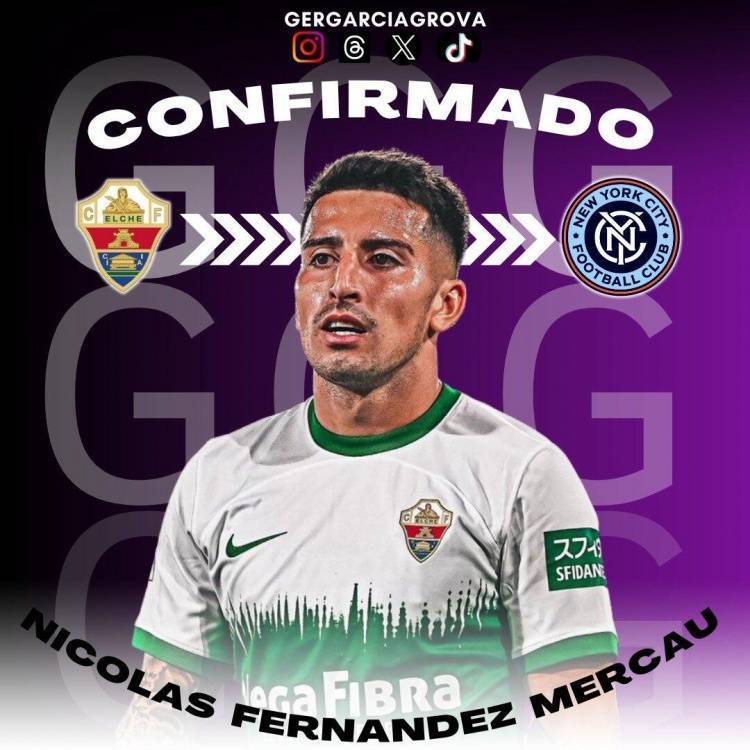 直播吧7月4日讯 据《阿斯报》报道,城市足球集团即将签下埃尔切中场尼古拉斯-费尔南德斯-梅尔考,球员将先去纽约城踢球。