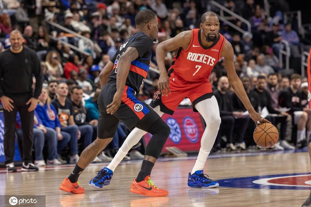 火箭队首发:凯文-杜兰特、阿尔佩伦-申京、阿门-汤普森、小贾巴里-史密斯、约什-奥科吉