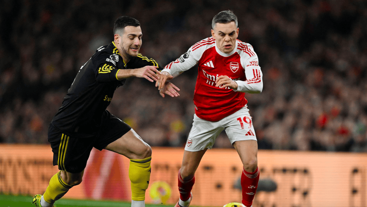 破门乏术的时候,还需要定位球来辅助,第84分钟,萨卡开出角球,梅里诺混乱中将球打进,扳平比分。